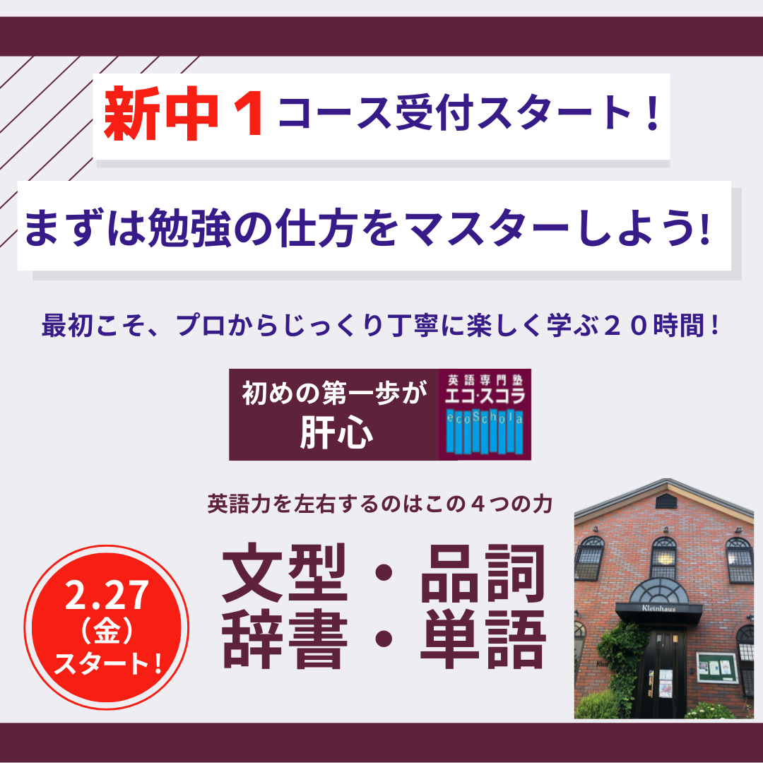【新中1コース受付スタート!】新中1生特別集中レッスン20時間ー2月開始!